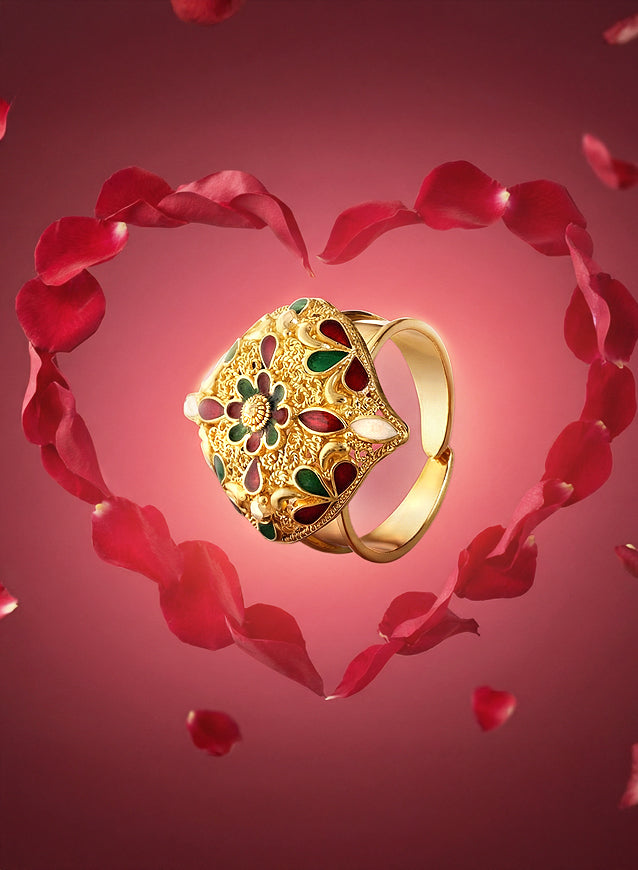Red & Ivory Mina Classic - 21K Gold Necklace Set with Earrings & Ring