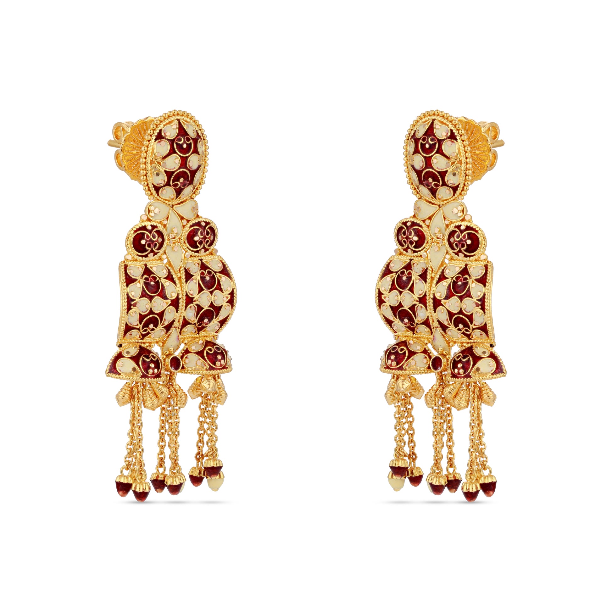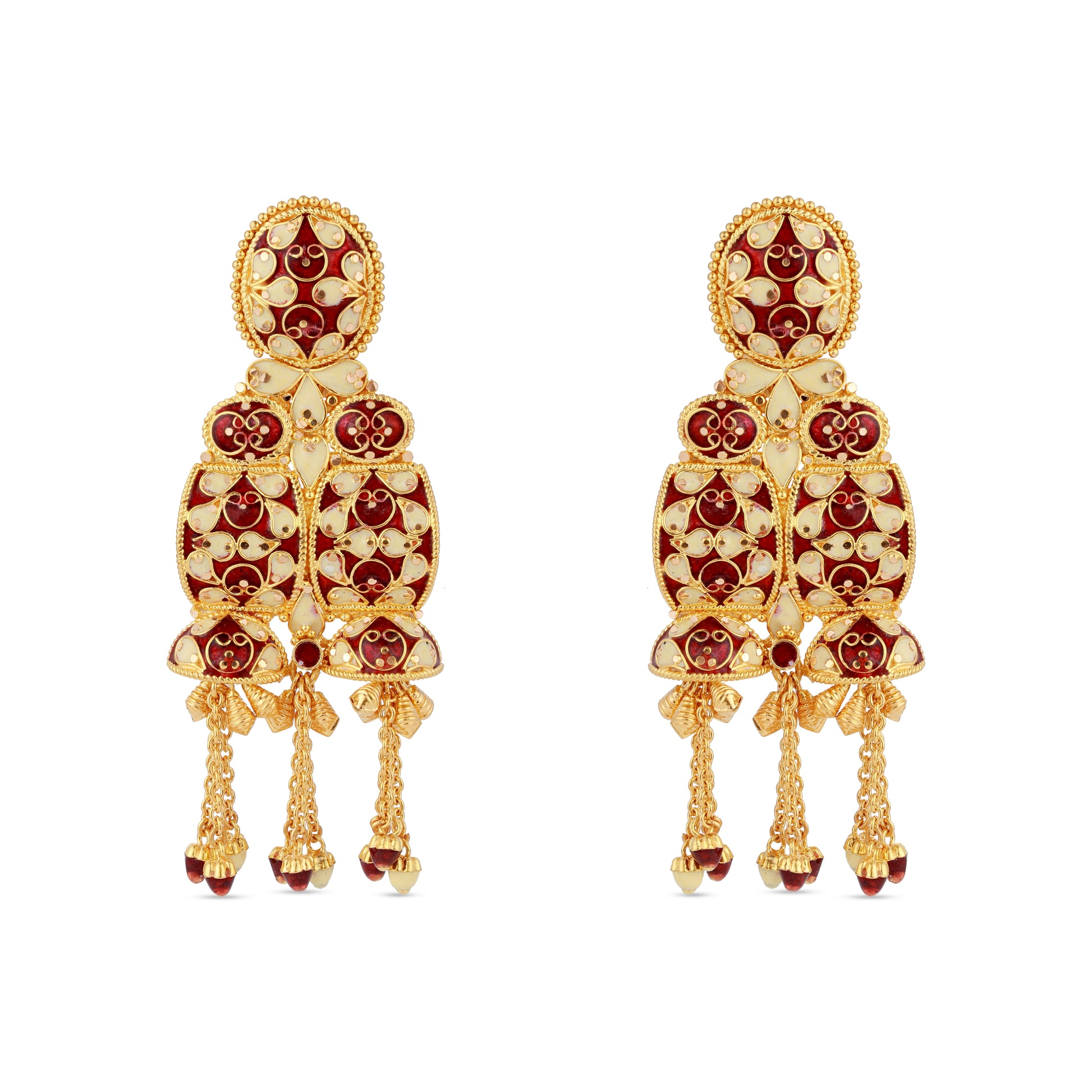 21K Red & Ivory Mina Gold Earrings